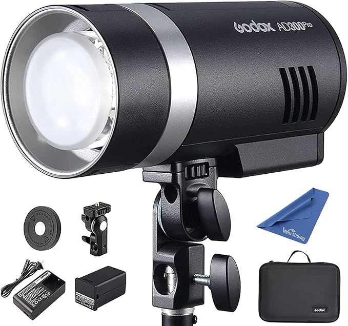 GODOX AD300Pro Outdoor Flash Strobe Monolight, 300Ws 2.4G TTL HSS 1/8000s Portable Flash Speedlight with Bi-Color Modeling Lamp and Recharagable Lithium Battery for Photography Outdoor Shooting