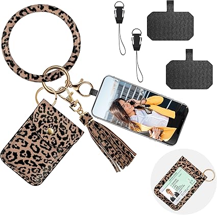 Phone Lanyard Wrist Strap Key Holder, Bangle Keychain Wristlet Phone Charm Bracelet with Badge Card
