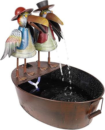 Alpine Corporation 20" Tall Outdoor Metal Crow Water Fountain Yard Art Decor, Brown