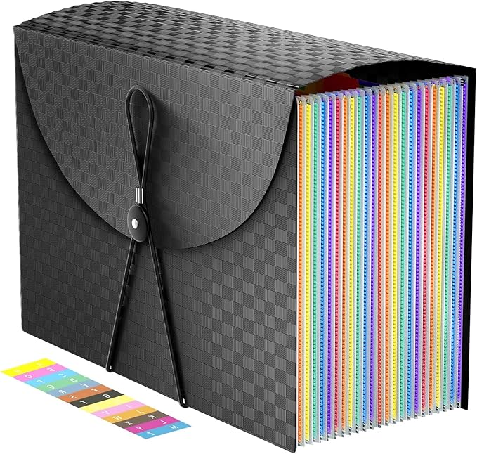 Expanding File Folders Accordian File Organizer with 24 Pockets,Accordion Document Folder Letter Si