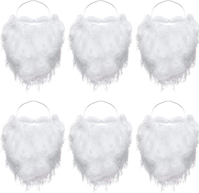 Boao 6 Pieces Funny Santa Beard White Fake Beard Christmas Santa Claus Beard Costume for Teens Adul