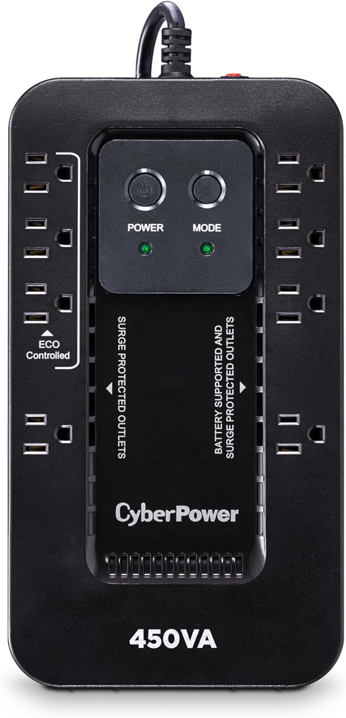 CyberPower EC450G Ecologic Battery Backup & Surge Protector UPS System, 450VA/260W, 8 Outlets, ECO Mode, Compact Uninterruptible Power Supply