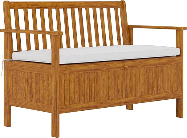 Outsunny 30 Gallon Storage Bench Deck Box with Zippered Padded Cushion Loveseat Perfect for Patio G