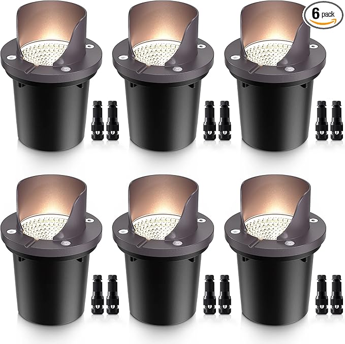 SUNVIE 12W Low Voltage Landscape Lights Waterproof Outdoor In-Ground Lights Shielded LED Well Lights 12V-24V Warm White Landscape Lighting for Pathway Garden Fence Deck, 6 Pack with Wire Connectors
